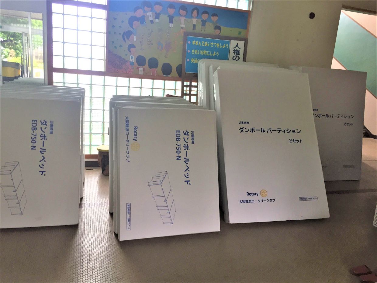 この度、大阪難波ロータリークラブと致しましては、社会奉仕活動における被災者・被災地支援活動の一環として、令和2年7月豪雨で、玖珠川、三隈川など複数の河川が氾濫し、人的及び家屋被害等を受けられました大分県日田市に対し、災害時、避難所等で使用するダンボール製のベッドとパーテーション(各50セットずつ)の寄贈を行いました。