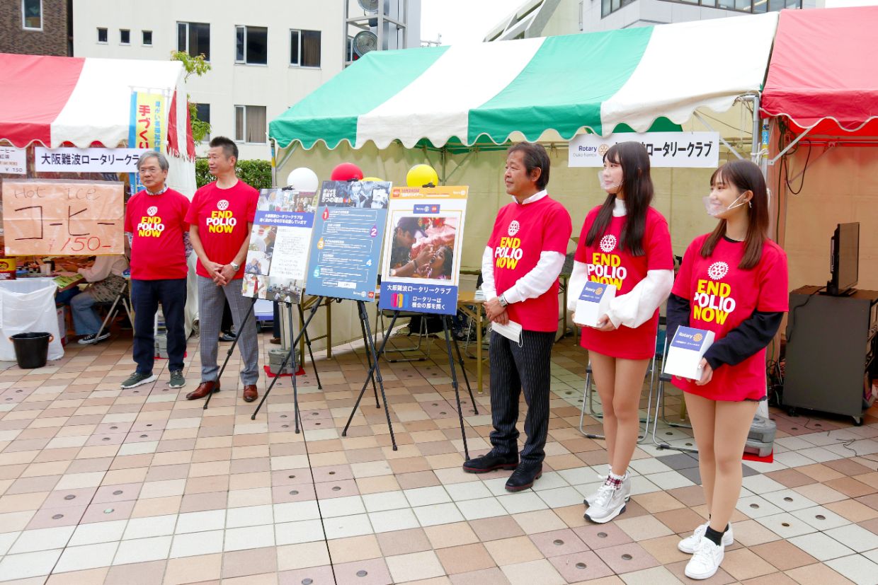 大阪難波ロータリークラブのメンバーも、休みの中ブースまで駆け付けて下さり、また来場者の皆さんにも「世界ポリオデー」を知って頂く機会に繋がりました。