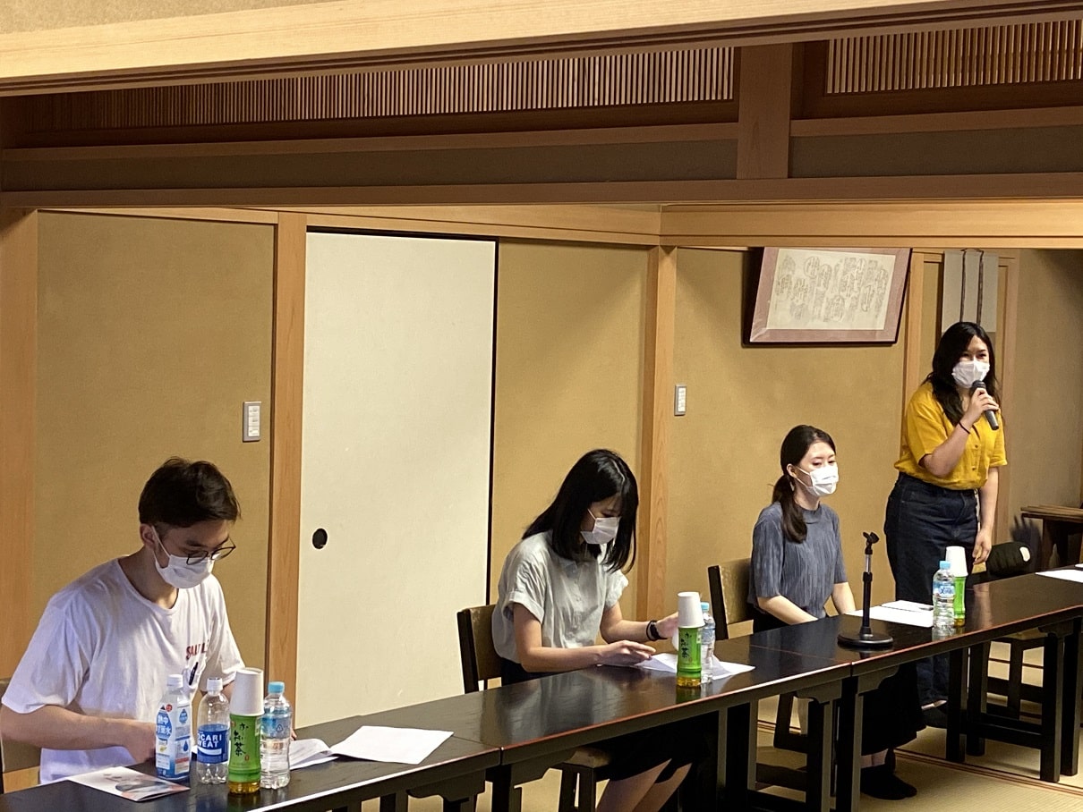 米山奨学生のジェイさんのご尽力で追手門学院大学留学生の4名の方にご参加頂き、今回のテーマでもあるコロナ禍の中で留学生として生活の上で困っている事や支障をきたしている事等について当クラブで支援出来る事がないか意見交換致しました。
