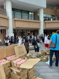 当日は天候に恵まれ約1,100人の学生が集まりロータリアン、ローターアクター、学友会学生ボランティアと一致団結して食糧配布を行いました!
