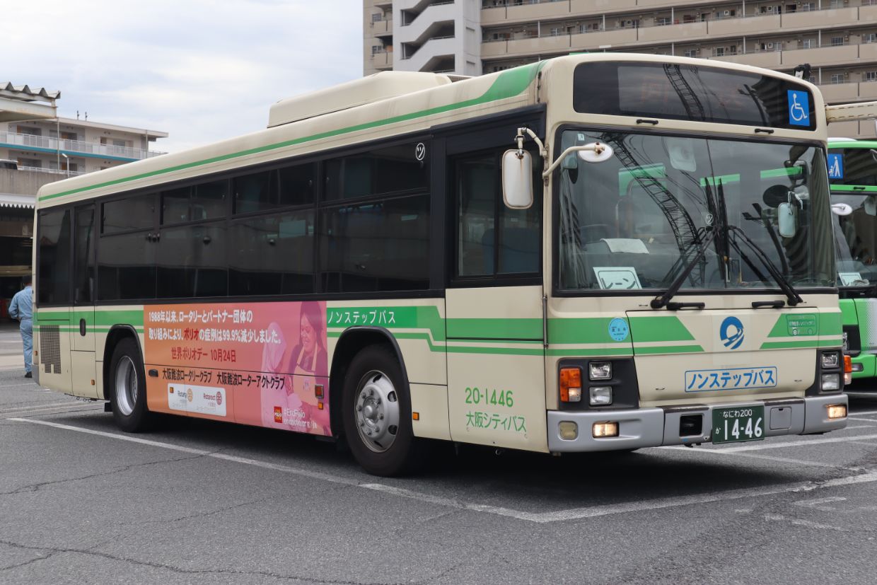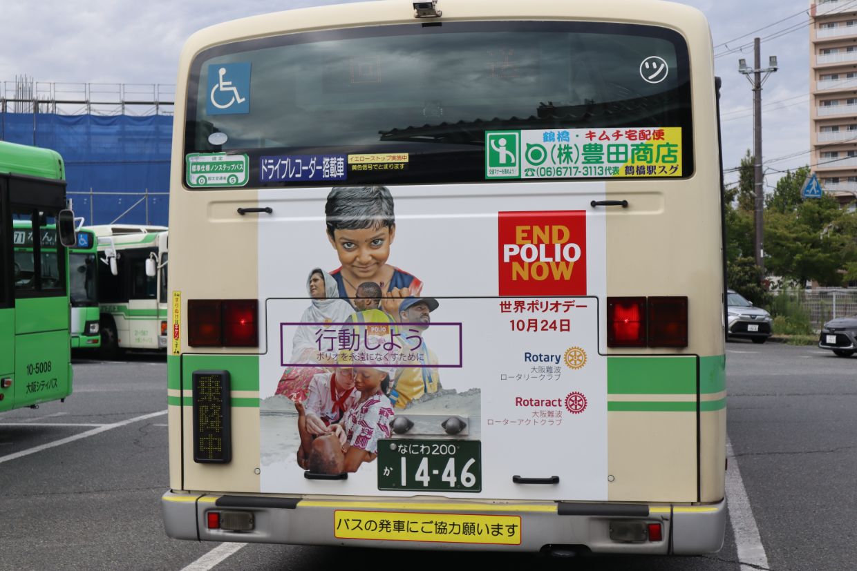 大阪シティバスに「END POLIO NOW」のラッピング(大阪難波RC)
