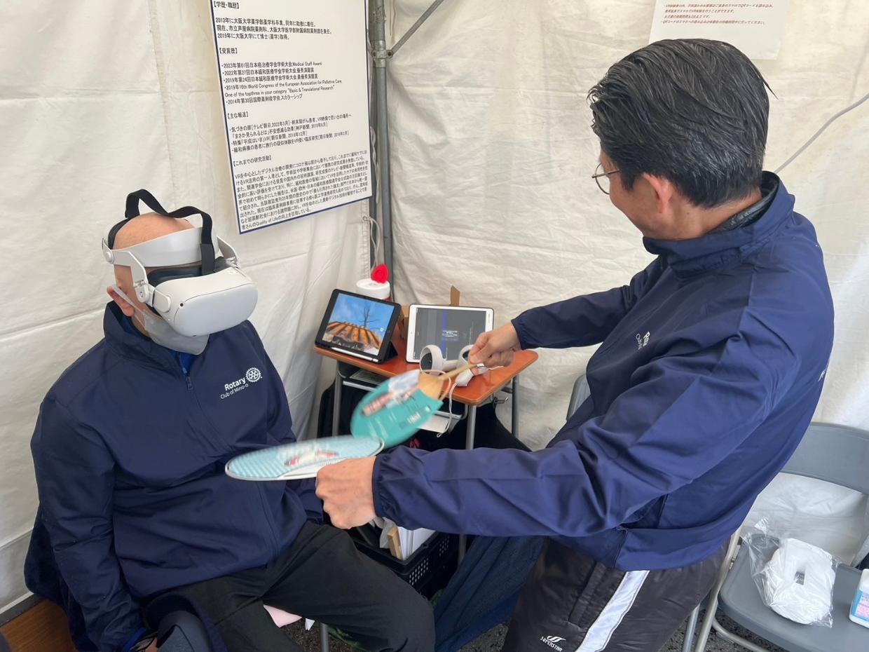 2024年3月23日の北大阪急行電鉄南北線延伸線開業に伴い開催されました『北急延伸記念新駅開業の祭典』に、大阪大学薬学部仁木助教授のご協力のもと、VR(Virtual Reality)装置の体験コーナーを出店しました。医療や看護の分野でも実用化されつつあるVRによって新しいデジタル映像技術を来店者90名に体験していただきました。